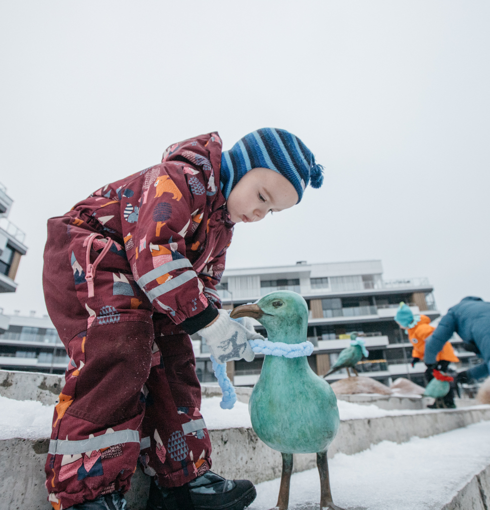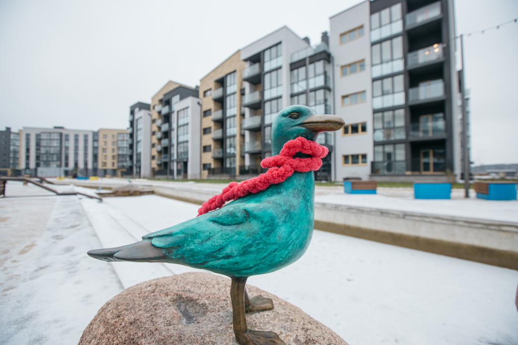 С наступлением зимних холодов чайки в «Пирсе» обновили свой внешний вид. Благодаря стараниям жителей квартала – детей и их родителей – каждая птица получила свой шарфик, созданный вручную в рамках мастер-класса «Согрей чайку».